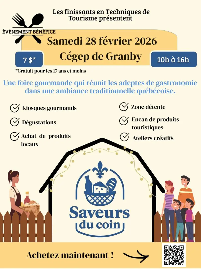 Les finissants en Techniques de tourisme du Cégep de Granby vous invitent à Saveurs du coin, un événement mettant en valeur les entreprises gourmandes locales.