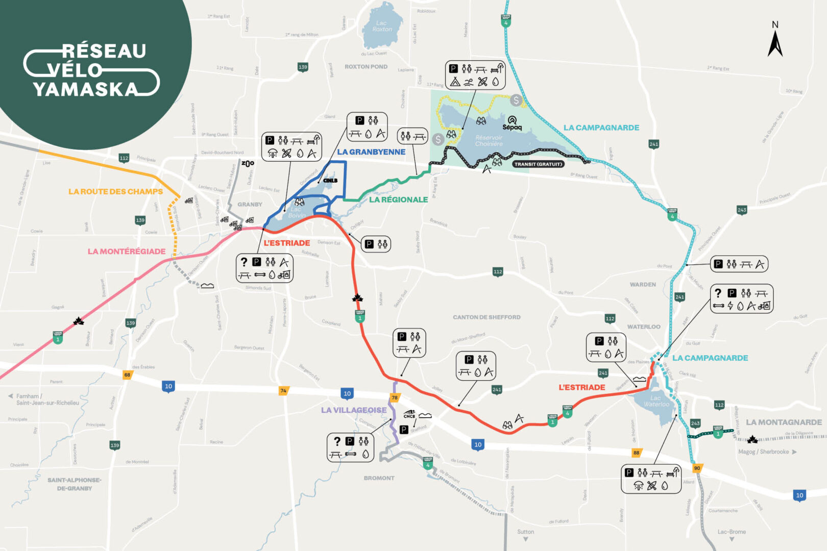 Sur une distance de 24 km, elle vous fera découvrir de magnifiques paysages dans la région de Granby en passant par le centre-ville de Waterloo, le charmant village de Warden et les forêts du parc national de la Yamaska,