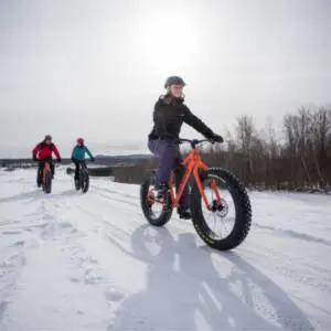 You can also ride fatbikes in downtown Waterloo on especially groomed bike trails. Once you’re done cycling, stop over at one of the local restaurants and order a take-out meal!